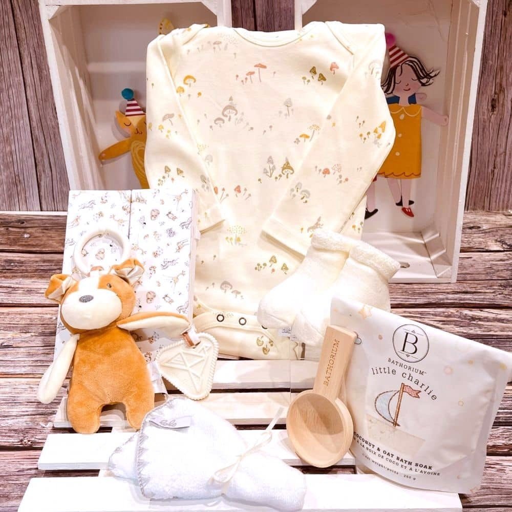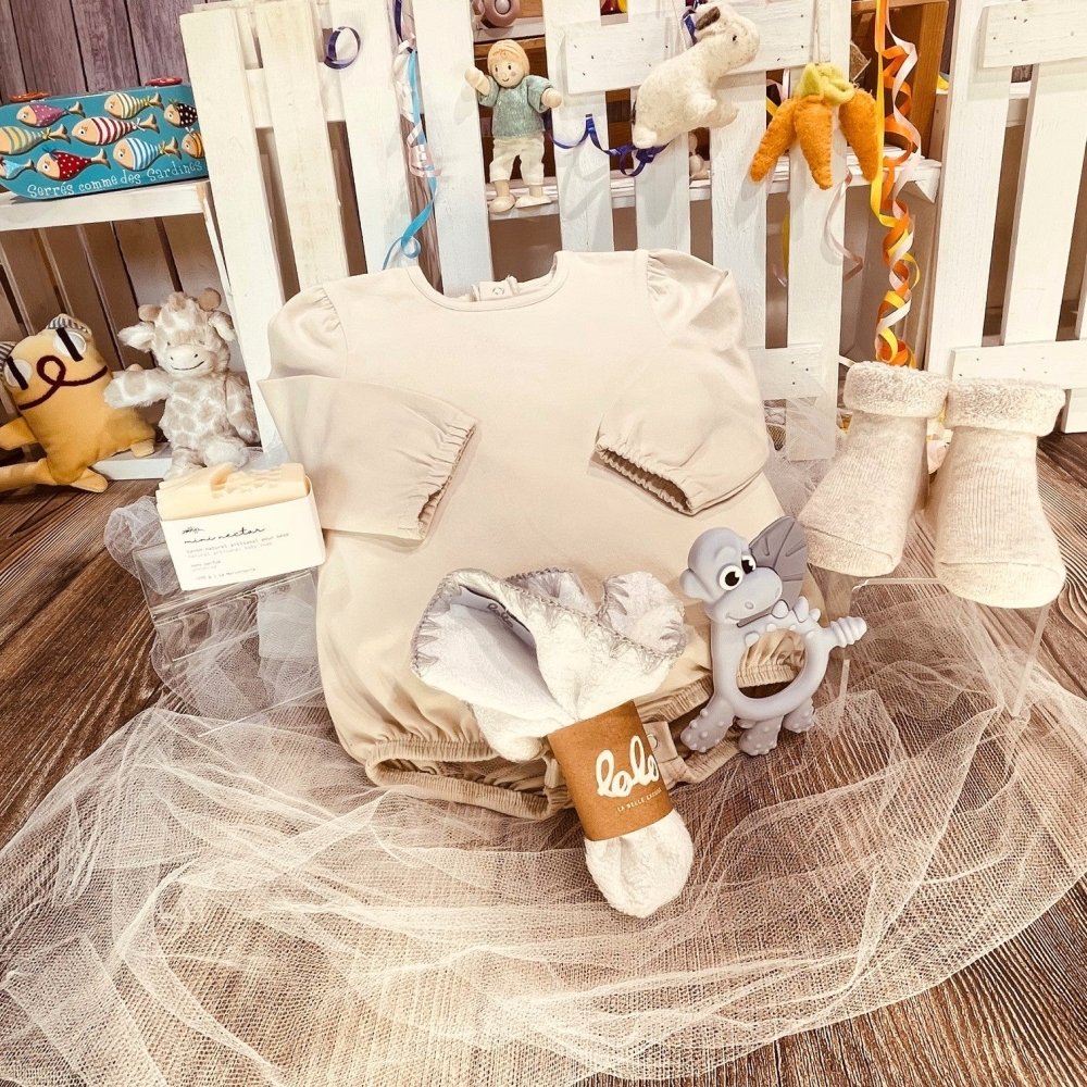 Plongez dans l'art du cadeau pensé avec soin grâce à notre sélection méticuleuse de trésors, conçus pour célébrer la magie des nouveaux départs avec élégance...un monde de charme intemporel et de délices infinis pour bébés sélectionnés avec soin, parfaits pour accueillir tout nouveau-né, quel que soit son genre ! 🌟